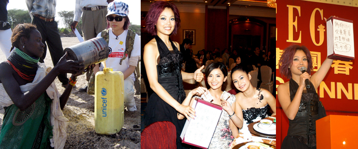 ![]() 從東非肯尼亞(Kenya)探訪回來的容祖兒,親眼目到當地長期嚴重旱災,引致沒有乾淨食水,所以從3月中英皇娛樂春茗當晚起,自發地提着自製的捐款箱,四處募捐。 祖兒說︰「其實該處原先是有一條河的,但因為長年累月的乾旱,所以近乎沒有水源,即使大家見到這些黃泥水,其實除了飲用外,更重要是會作醫療用途,可以想像到是何等污糟及不衛生呢!」原來那個窿已經是河底,但亦只是些黃泥水,所以會等待沈澱後,再利用僅餘的水作醫療用途,或作飲用,但河底卻是佈滿蚊蟲,即使蹲下去一分鐘,已被蚊蟲咬到雙手,但那些當地人卻是每天重複被咬。 後來大隊到達一處已安裝泵水塔的地方並看到啟用儀式,由於污糟水可以經過過濾,所以已經是乾淨水,當地人對於善心人的捐款而令他們建成了泵水塔,並有乾淨水,各人都打從心底裏笑出來。 回港後,祖兒記掛着小朋友燦爛的笑容,所以便構思了募集善款行動,並定下港幣三十萬為目標,由春茗當晚開始籌款,該晚上亦已籌得超過六萬元,由於祖兒帶頭牽引,其歌迷亦同時響應,香港歌迷亦陸續籌集款項,而星馬歌迷亦籌得近萬元,還說四月底演唱會時應該能籌得更多善款,所以為非洲肯尼亞興建泵水塔一事將會是指日可待的。 更新时间: 2007年4月11日 9:54:37 PM