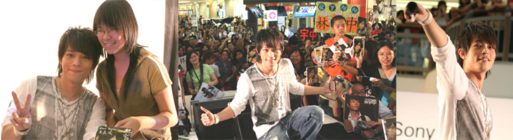 活动:5项全能'<<淋雨中>>首场签唱会 日期: 2007年5月19日 时间: 下午3时 地点: One Utama , New Wing大厅 (马来西亚19日讯)林宇中在签唱会上演唱代言广告歌《捉迷藏》时,也拿出身上的数码相机拍台下粉丝们的照片。当演唱另一首歌曲《旋律》时,更走下台牵小妹妹上台对她猛放电,也许是年龄太小的关系,小妹妹一直看着在台下的妈妈,对林宇中不理不睬。 终于巧到档期回马宣传的林宇中,今天终于举办《Sony 嘉年会兼林宇中5 项全能签唱会》。 主角林宇中出场立即引起骚动,在跟主持人闲聊代言相机喜爱的一些主要功能后,几位忠实粉丝上台献花给林宇中,也让他感动的主动拥抱粉丝们。让台下其他粉丝们又羡又嫉的。 林宇中轮流与參加电台游戏胜出的优胜者,还有现场购买代言相机的朋友合照。然后开始为在场的歌迷们在新专辑上签名,大约签了近 2 小时,才把CD签完。 更新时间: 2007年5月22日 1:53:01 PM