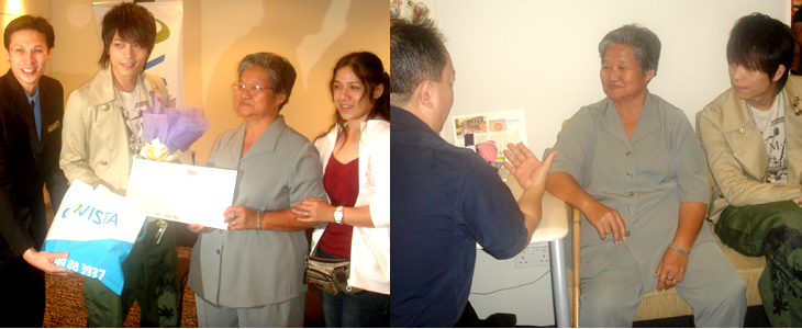 (马来西亚新闻)母亲节不是已经过了吗?没错,虽然母亲节已经过了但林宇中对妈妈的爱从不间断!他的爱与关怀让一位67岁的妈妈开心不已。 为了配合母亲节,林宇中于星期天,早上9点30 分,在The Curve 二楼,Vista Laser Eye Centre 举行“宇中”不同的爱。VISTA 母亲节感恩献礼”颁奖仪式记者会。这个活动是海螺音乐联合平面媒体主办的,吸引了许多媒体都到场见证这温馨的一刻,场面好不热闹,镁光灯更是闪个不停! 此活动的优胜者是一位67 岁的妈妈黄月友,其女儿是严美婷。该女儿透露,当她从报章上得知这个活动,便第一时间写信参加。对于这次赢得比赛,她感到非常开心及意外,因为能够让母亲享有免费检验白内障的待遇。这位母亲在两年前已患上这疾病,由于医药费十分昂贵,所以便一直拖延着病情,而没有做任何的检查。 我是“铁头”的粉丝!! 提起这位母亲,原来在看过林宇中饰演的《原点》电视剧之后,开始喜欢上这位讲情讲义的剧中人“铁头”,所以在记者会这天,当林宇中进入现场的时候,这位妈妈还对媒体说“铁头来了”,让在场的媒体也难以置信“铁头”林宇中的魅力真的很火哦!!!67岁的黄妈妈还说,她的女儿很支持林宇中,现在她也开始支持女儿一起为林宇中加油;难得的是,在今天的活动还可以看到林宇中本人,真的很开心,也很感谢林宇中送她的这份礼物。 记者会上林宇中颁奖给“宇中”不同之“爱的活动”的优胜者, 既是黄妈妈母女,并且合照留念。之后,黄妈妈被安排进入一间房间里接受白内障检验,而林宇中也陪伴着黄妈妈聆听医生详细说明诊断的结果。同时,他也亲切地慰问黄妈妈及关心她的病况。黄妈妈十分担心自己的病情,频频向林宇中及医生说自己害怕打针,而林宇中则不断安慰黄妈妈并要她放心,一切都会没事的。林宇中的贴心表现,让黄妈妈听后非常开心,而那位优胜者也非常感激林宇中让她妈妈有机会接受这个检查。 当记者询问他母亲节是如何度过的;他表示,记得有一年母亲节,他因在外地工作而无法陪母亲度过那年的母亲节,于是便上网定了一束花给母亲当作是母亲节礼物。怎知,几个月后回到家里,才从母亲的口中得知,原来他妈妈一直以为那礼物是他姐姐送的,摆了个大乌龙,而这就是他最难忘的母亲节了。最后,他说如果有机会的话,会多多参与这类形的活动。 更新时间: 2007年5月29日 1:48:10 PM