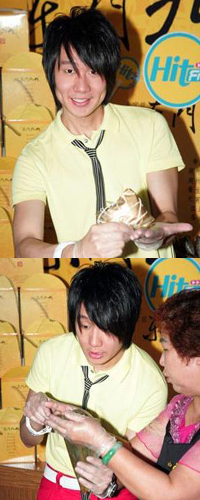 (马来西亚)身为本届金曲准男演唱之一的JJ林俊杰,新专辑歌曲《杀手》于“Hit Fm联播网”全球首播广受好评,因此在电台的安排下,林俊杰拜师学艺包金粽祈求好彩头,一听大家说包粽同音与“包中”相同外,包金粽的发音“包金雕”更意涵保证中意思,让台语有待加强的