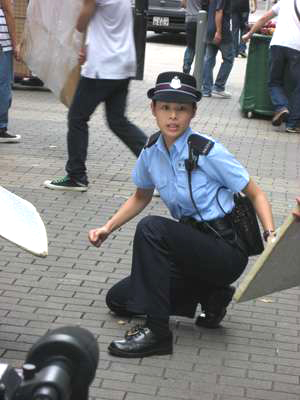 (香港新闻) 胡杏儿昨日为时装版《我的野蛮奶奶》拍外景,身穿女警制服的杏儿,为了帮一个小妹妹追回公仔,实时变身女成龙,既要跳过手推车,又要飞身擦地穿过一幅大画,更要在载人单车上凌空侧手翻,不过这一切都是女替身代劳,杏儿只是补拍几个近镜及一些简单动作。但由于天气炎热,拍起来也是十分辛苦。