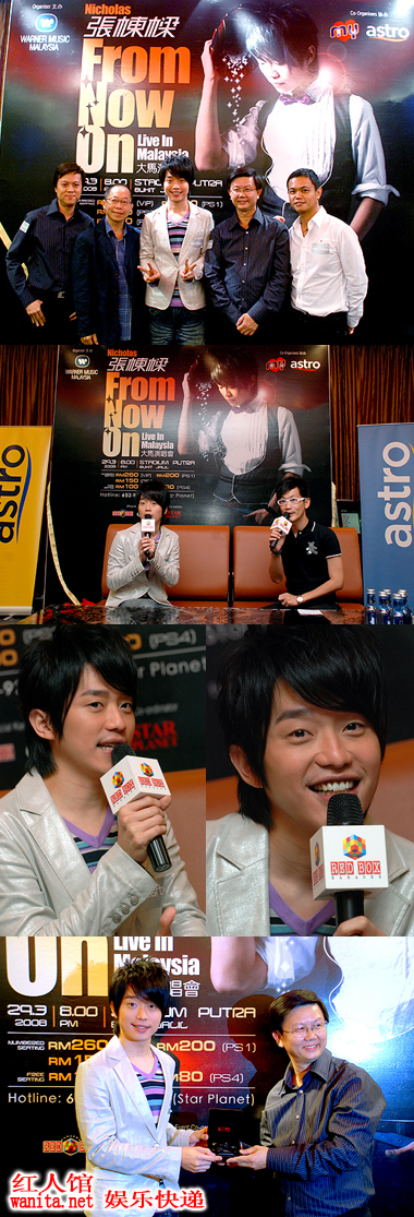 累积了三张专辑的好歌,张栋梁终于将要在马来西亚举行他生平第一次的大型演唱会了,而这次演唱会的场地是可以容纳一万人的STADIUM PUTRA BUKIT JALIL,被问及是否会担心演唱会的票房不理想,张栋梁表示对自己的歌迷很有信心,并许下承诺,这次的演唱会将是一个很精彩的PARTY,希望大家到时看了之后都会很开心的离开。 由华纳唱片公司主办、MY FM及ASTRO协办的张栋梁FROM NOW ON大马演唱会将在2008年3月29日(星期六)于BUKIT JALIL INDOOR STADIUM隆重举行,演出时间是晚上八时正,票价分别为RM80、RM100 (自由入座,另加RM3手续费) RM150、RM200、RM260 (对号入座,加RM3手续费) 本月26日起,凡是ASTRO用户可凭月结单到以下指定柜台订票并获得15%折扣: 金河广场底层售票专柜(HOTLINE:03 9283 3667) 全马TICKET AXCESS售票中心(HOTLINE:03 7711 5000) 首100名于1月26日在金河底层售票专柜购票者将获得限量海报 询问热线: STAR PLANET星艺娱乐热线:03 9283 3667 TICKET AXCESS:03 7711 5000 网上订票: www.starplanet.com.my RED BOX & GREEN BOX Online Booking: www.redbox.com.my HOTLINE: 03 2145 2233 Special privilege for Dot Red members - 特约Guyuno 摄影报导 更新时间: 2008年2月21日 1:53:34 PM
