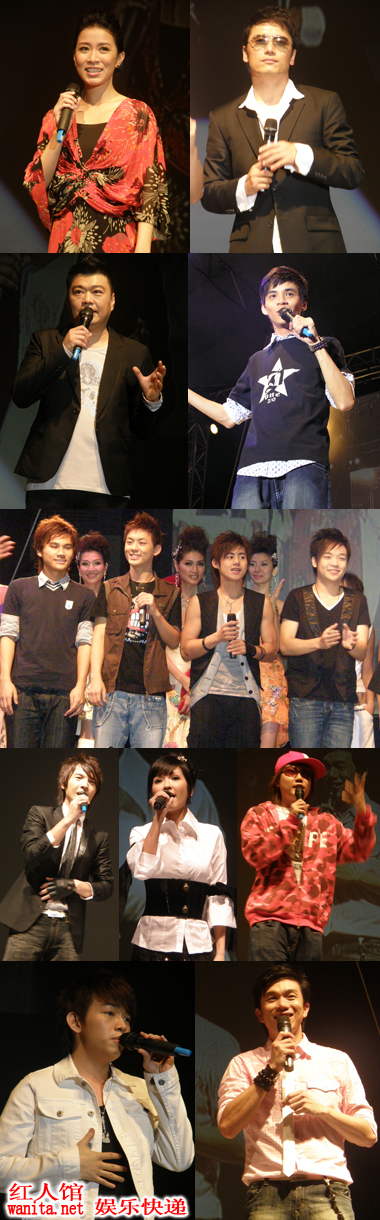 日期:2008年1月27日 时间:晚上8点 地点:NZX牛车水 (吉隆坡新闻)众歌手在新春佳节来临之前于新开张的牛车水开唱,与歌迷一同迎花季。可惜,天公不作美,炎热的天气在舞导员出来热场后即下起大雨。打头阵的温力铭首当其冲,遗憾大家只顾左闪右避而忽略了在台上落力演出的他。幸好,温力铭的歌迷没有因为豆大的雨点而走掉,继续在台下支持他。 雨势越来越猛,把许多音响及设备都淋湿了。大雨让现场的观众变成落汤鸡,部份来看热闹的观众都纷纷离场。当时在台上演出的新晋组合全男班也被雨淋湿了,但他们还是十分敬业地把他们的歌曲“天使的声音”演唱给观众们。后来,梁佑诚宣布“唯恐电线被淋湿而走电”而暂停节目,引来台下歌迷的不满。他为了安抚歌迷还差一点跳下台和他们一起淋雨呢! 还好,节目只暂停5分钟,让其与的歌手在度出场。当晚的黄俊源像足了雨后的天气,特别开朗。他在演唱“只要你还在”时,对歌迷说:“只要你们还在,我永远会撑下去!”,赢得众人掌声及欢呼声。有趣的是当黄俊源为歌迷示范吹汽球游戏时,他一不小心让汽球飞走,吓得害怕汽球的主持人梁佑诚赶快溜走,让台下观众捧腹大笑! 当晚的重头人物之一元兆祥一出场,粉丝即大喊“舅父波”,看来他的“最佳男配角”奖是众望所归,实至名归的哦!他这次不唱“吻别”,改唱周杰伦的“星晴”,让他的粉丝听出耳油!另外两位重头人物苗侨伟和佘诗曼在名模谢丽萍及叶良财的陪同下隆重出场。刚当上眼镜店老板的三哥不忘秀一秀他的眼镜,让他更添魅力,迷得粉丝失魂落魄!佘诗曼十分应节,穿得红彤彤。她在演唱“花花宇宙”时,特别请了5位观众上台伴舞。阿佘和粉丝一起扭腰摆臀,又唱又跳玩得不亦乐乎! - 特约Stephy 落汤鸡报导 - 特约Ivy 摄影 更新时间: 2008年2月12日 2:38:40 PM