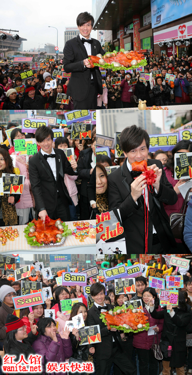李圣杰牺牲年假,带着经纪人妹妹与助理堂弟,一起在工作中团圆,就连老家在高雄的爸妈,也欢喜配合儿子忙碌的行程,约好了除夕吃完团圆饭,大年初一就陪儿女们,一起参加屏东、高雄、台南的签唱会,圣杰一家人还戏称这是「签唱庆团年之旅」! ! 大年初四最后一站回到台北举办,就连好友知名DJ丹尼斯DENNIS也特别牺牲年假来为圣杰主持签唱。签唱会上李圣杰一连演唱四首新歌,也首度在记者会之外的场合,带着舞群载歌载舞表演快歌「SO FUN」,并在热歌劲舞同时分撒金元宝、金鼠造型糖果分送给台下的歌迷朋友,希望大家可以沾沾喜气! 因为年初四与年初五分别是接神与开工迎财神的日子,才刚升级做老板的李圣杰并不懂这些传统仪式,加上身为天主教徒,一方面不想有违教义,一方面还是希望为新公司与新专辑带来一点喜气的好兆头,身为老板的他说:「虽然没有传统的开工接神仪式,但当然也不能让财神爷与我"擦肩而过"!」,于是连日想了一个"中西合并"变通的办法,不但可以让全场的歌迷和他一起接财神,也让大家在金鼠年都能讨个好兆头财运旺旺旺! 签唱会现场意外出现一头烤乳猪,乳猪旁边堆满上了金漆的马铃薯与金元宝,这原来具有多重意义;除了用这头乳猪来提早开工接神之外,拥有四分之一德国血统(外公是德国人)的李圣杰说:「德国人视猪为成功和幸福的象征,他们在年除夕夜守岁时不能说话,一直坐到天亮,但是他们在新年聚餐时一定要吃猪肉,来代表今年一定会成功和幸福」。同时,今年又是鼠年,所以在乳猪四周摆了很多上了金漆的马铃薯来象征"金鼠",代表着【送金猪迎金鼠】迎新年仪式!随即,李圣杰亲自拿刀切"金猪"分送给台下歌迷,希望吃到的歌迷今年都能获得"成功与幸福"!! 更新时间: 2008年2月14日 3:11:07 PM