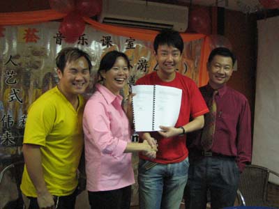 ![]() 自李伟菘音乐课室成立于2001年,在短短的四年时间里面,培育出不少的才子才女,发掘不少的音乐人才!昨日(26/4/2005)在李伟菘音乐课室进行了一项专业主持人与口才与演艺的课程签约仪式。签约仪式的嘉宾有李伟菘、洪秀琴、尤进来、KK。 专业主持人的课程对象是成人、离校生或者是在职人员。通过这项课程了解自己的缺点,改进自己的缺点,运用自己的个性丰富自己。课程内容包括语音、广播概论、广告配音等等。每一季课程末都会分组到录音室进行录音活动,好让学员们感受录音的过程。另外,口才与演艺课程的对象特为小朋友。课程分为初、中、高,三个阶级。小朋友可以通过这个课程发挥演讲能力,增强他们的表达能力。这两个课程都是为期一年。 为了让大众了解课程的资讯,李伟菘音乐课室将在2005年5月15日(星期日),下午3时正,举办一项课程讲解会。朋友们可以了解课程后才选择是否上课。 此外,李伟菘音乐课室将在2005年6月18日(星期六),傍晚7点,在Dewan Panggung Bandaraya (DBKL)举行一场第四周年的慈善演唱会。当晚会场司仪为洪秀琴。 演唱会主题为《环游四界》。四界为,唱、跳、创作和演奏。这四点为当晚演唱会的主要特色。学员可以通过这次的演唱会表现出自己的才华,包括,现场自己的创作、第一次编写剧本、参与舞台表演,等等的项目。当中李伟菘和李思菘也会是演唱会的表演嘉宾。 这次的演唱会入门票是以最低RM15的乐捐方式购买。以往三年的演唱会,所得到的筹募款项,将捐献给修成林洗肾中心。同样的今年也不例外。希望通过这样的活动可以帮助到更多更需要帮助的人。对音乐热诚又不忘行善的你,可别错失良机!有意购票者可以向李伟菘音乐课室 KL:03-21488793 或PJ:03-78771713询问详情。 更新时间: 2005年4月28日 11:51:02 AM