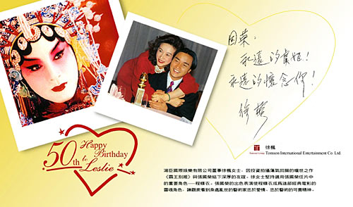 ![]() 今年9月12日是“哥哥”张国荣50岁诞辰,包括两届金马影后徐枫女士(也是《霸王别姬》制片人)在内的众多哥哥的好朋友在happybirthdaytoLeslie.com(哥哥生日快乐网)上对哥哥道出最真挚的祝福,并在筹款活动中捐出超过10万元,准备于9月10日举行的生日聚会上以哥哥的名义全数捐出。 从这个周末开始,全世界“哥迷”都将涌向香港,一起纪念这位华人艺术界的传奇人物诞生五十周年,各种活动也源源不断出现。哥哥生前做了无数善事,为秉承他的精神,Leslie Legacy Association(张国荣国际歌影迷组织)发起慈善活动,希望集合全球“哥迷”的善心,为哥哥唱出一首慈善生日歌。 Leslie Legacy Association建立慈善网站happybirthdaytoLeslie.com(哥哥生日快乐网),哥哥好友同时也是《霸王别姬》制片人的徐枫女士得知此慈善活动后马上捐出5万元,让善款数字在短短一周内超过10万元,相信在9月10日活动结束前善款数字还会继续突破。 所有善款将在9月10日香港会议展览中心举行的“点点爱心火”哥哥庆生慈善聚会及善款移交仪式上,全部以哥哥(张国荣先生)的名义捐赠给国际救盲先驱奥比斯(ORBIS)。“哥哥生日快乐网”还即将展出由两位著名网友“的灰”和“ALICE”制作的长达一个多小时的视频《张国荣艺术生涯大事记》,此视频收录了哥哥出道以来的电影、电视、音乐和演唱会等珍贵影像,弥足珍贵。 更新时间: 2006年9月7日 4:35:21 PM