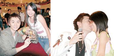 女歌迷献吻 黎升铭僵硬
