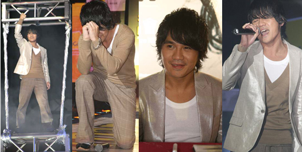 ![]() 日期:3/1/2007 时间:8PM 地点:吉隆坡时代广场(TIMES SQUARE) 事项:2007 Superman 曹格 Digi 精彩呈现亚洲首唱会 配合曹格新专辑的推出,特别选在马来西亚举行亚洲首唱会!让亚洲媒体与歌迷一同见证新专辑的推出。首唱会一开场,曹格站在升降台上,相似SUPERMAN那样从天而降的,降至舞台!一开场就带给大家新专辑的歌曲《3-7-21》,歌曲中段他还在舞台上大跳踢踏舞,让台下的观众与歌迷朋友,HIGH到极点。歌曲结束后他并没有多言一语,只跪在台舞台中央,歇一歇喘口气后,继续为大家演唱。首唱会上曹格的第一句话“我一直都在做音乐,也有很多失败的例子,可是我一直都没有放弃。上一张专辑《格格BLUE》获得很多人的帮助,在此也感谢各位媒体的帮忙。” 首唱会上,不多言的曹格一口气演唱了5首新歌。曹格那风骚演唱方式,俘虏了各位歌迷的心。他不时激动的唱到跪在舞台上,近距离的与歌迷朋友互动。他在台上表示说,上一张专辑感谢大家的保护,所以新专辑里收入了《保护你》这首歌还给大家。随后歌迷朋友一度要求曹格脱掉外衣,曹格调皮的回答,还脱?没得脱了,这还要穿哦? 当曹格感谢主办单位时,他调皮的要歌迷朋友一起与他高喊主办单位的名字,他喊一句歌迷喊一句!搞的坐在台下的高程们,大喊GOOD! 曹格回去后台的片刻,主持人大胆要歌迷朋友,演唱12月29日刚发的专辑《SUPERMAN》里头的歌曲,歌迷在短短几天把歌词背得滚瓜烂熟,令在场的观众大吃一惊,让主持人心服口服的把礼物送出。 在主持人的带动下,歌迷朋友一起高喊“GARY”“曹格”,曹格再度出场多演唱一首歌曲。随后,便进行签名会,让歌迷朋友近距离接触偶像! 更新时间: 2007年1月5日 1:32:06 PM