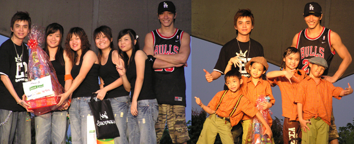 ![]() 日期:04/03/2007 时间:下午5时 地点:BUKIT JALIL 户外 活动:DANNY温力铭签跳会 配合阳光青年主办的春节元宵嘉年华,拥有阳光气息的DANNY温力铭于农历新年最后一天举办了别于签唱会的活动形式,举办一场“签跳会”。虽然与在同样地点举行演唱会的王力宏撞在同一天,现场依然人潮汹涌。 这次的签跳会主要目的除了为新专辑宣传之外,一向专注社会动向的温力铭也借此活动把正面讯息带给年轻人,希望HIP HOP舞蹈可以带动年轻人参与更多户外活动,并且结交更多志同道合的朋友,共同营造一个健康的社会。 这次的街舞比赛,不但吸引了吉隆坡以外的朋友参加,参赛者的年龄阶层也很广,除了二十余岁的参赛者之外,连小朋有也来参加。这组平均年龄只有8岁的组合,取名为“Locking”。虽然这五位小朋友年纪轻轻,但跳起街舞的动感决不逊色,赢得现场掌声尖叫声连连。“Locking”实至名归成为这次《DANNY温力铭签跳会》的冠军得主。 这场签跳会,主角温力铭担任评审一职H之外,也邀请了Urban Groove导师来见证这场属于年轻人的街舞比赛。 5支队伍比赛完毕后,天空不作美的下起雨来,颁奖仪式及温力铭签唱时段被逼延后。大雨迟迟未停,主办当局只好邀请温力铭上台颁奖给得奖者,随后结束了活动。很多到现场支持温力铭的朋友,因为签唱环节取消的关系,迟迟不肯离开。 最后在工作人员的安排下,温力铭在后台休息室为久等他出场的歌迷朋友签名。温力铭也因此心存感激的谢谢歌迷一路以来给予的支持。 更新时间: 2007年3月7日 4:31:32 PM