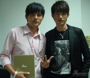 近日,两人同场参加MTV 音乐台演唱会时,师兄和师弟两人终于相认,而且演出当天不仅是两人首次同台演出,更是首次的见面,为了这难得的机会,吴建飞在演唱会当天在演唱完自己最新单曲《脆弱》后,还特别留下来等待师兄周杰伦,除了要跟师兄相认,当然也是为了要亲眼观赏周杰伦的表演。 对于已经贵为超级巨星的师兄,不论是歌唱、创作甚至是戏剧,吴建飞一直以周杰伦为学习的榜样,而听公司老板在现场说起周董在还没被发掘时,在公司的辛苦以及大红大紫前后的差别待遇时,“无敌小老鼠”更加珍惜自己现在的幸运,也因此他说自己要再更加努力才行,在专辑的筹备期间,即使要一边宣传单曲《脆弱》,一边拍写真、广告和戏剧,当然锻炼身体也是必要的。对于运动细胞缺乏的吴建飞表示,游泳是他的长项,而且对于他唱歌也有很大的帮助,但是,曾经白天到健身房健身时遇到找他签名和拍照的,让他很不知所措,甚至担忧是否会有走光的照片流露在外,因此,之后他只能选择在夜晚凌晨无人时游泳,而且在无人的游泳池更能放松的锻炼身体之外还可高歌清唱。 这次除了师兄和师弟的相认,在后台也发生了一段小插曲。和周董在同一间休息室的建飞,当周董先行作媒体访问时,DANCER不知此时的周董离开休息室做媒体的采访,而将留在休息室的吴建飞误认为周董,当时没想到两人会有相似的地方,后来在两人合照后,赫然发现两人还真有神似的地方,除了眼睛同样是时下流行的“花样美男”单眼皮外,就连发型和身高都惊人的相像,也难怪会让人误认了! -- 新闻及照片转帖自21cn 更新时间: 2007年7月7日 12:41:14 AM
