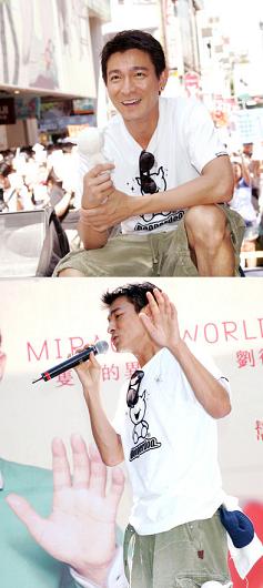 周六下午的西门町,因为刘德华到临被挤得水滞不通,一直长长不见龙尾,呼喊华仔之声响遍四周,因为天气太热的关系,华仔昨晚叫工作人员特地代他去选购短裤,以一身最凉快打扮到场,台湾记者鲜见华仔穿短裤,大为意外更有人问华仔为什么腿可以这样瘦,华仔就笑道,“所以你们别以为只有莫文蔚才有一双美腿,我也有呢,哈哈哈。” 由于歌迷大清早就开始挤在西门町派对等侯,干晒大半天,华仔十分担心歌迷会中暑不适,一上场便马上问侯歌迷,是否都没问题,喝的水够不够多,有没有扇子,又叮嘱歌迷及群众,假如不舒服便不要再勉强排队,找他签名其实并不是一件难事,健康才是最重要。 签名活动之中,有两名即将结婚的歌迷一同前来,并邀请华仔出席他们九月的婚礼,华仔说本来很想参加,可惜九月他要巡回演唱,所以只可以现在送上他最多的祝福。一同对歌迷十分有心的华仔,昨晚于台湾百忙之中也上网写blog,更亲手画了一张慰问咭送给前日于猫空缆车被意外高空掷物打伤的女歌迷,祝对方早日康复。 西门町的签名会后,华仔马上又马不停蹄赶往台中,于昨晚七点半再举行另外一场台中的唱片签名会,可谓认真辛苦。 -- 新闻及照片转帖自新浪娱乐 更新时间: 2007年7月22日 3:10:41 PM