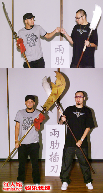 (台湾新闻) 日前刚结束『张震岳很OK不插电音乐分享会』的阿岳,演出非常成功,虽然许多歌迷要求加场,但仍有待主办单位滚石唱片与诚品的多方考量与确认。新专辑『 OK』海外通告满档的张震岳,马不停蹄地飞奔海外展开宣传,整个八月都不会在台。MC HotDog为了力挺好兄弟阿岳,表示要在阿岳不在台湾时,接下宣传全新专辑『OK 』的重责大任,感念当初脚受伤的阿岳还帮忙完成『我爱台妹』,让热狗连续两年的金曲典礼上都获邀表演。 MC HotDog为了表现自己对兄弟的义气,特地带了大关刀来耍,热狗说:「为了阿岳,我可以"两肋插刀"!」