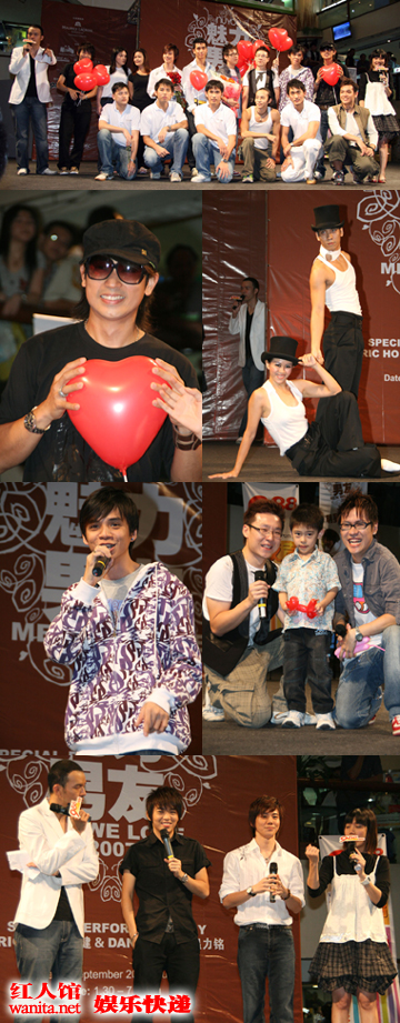 地点:金河广场大厅 (吉隆坡新闻) 由<<女友>>杂志举办的<<魅力男友Men We Love>>第一场热身活动在吉隆坡金河 广场揭开序幕。每一年,<<女友>>皆会甄选城中25位来自各个领域的出色男士为<<魅力男友>>,并于10月份杂志内公布入围名单。今年<<魅力男友>> 首次走出户外,在金河广场底层举行的热身活动抢先亮相,与群众互动。 8TV电视节目主持人叶剑锋和988电台DJ大宝首次携手拍挡主持,为这个全城瞩目的热身活动精彩串场。当天受邀出席的明星男友包括DANNY温力铭,DANIEL李吉汉,JOHN黄俊源,JEFF,JENTZEN,SK及ARIC何志健。活动现场,明星男友亲力亲为的走到台下义卖气球及玫瑰,并且还与歌迷合照及签名为为雪兰莪爱护动物协会SPCA筹款。 DANNY温力铭及ARIC何志健是活动的表演嘉宾,他们分别演绎两首自己的作品,两人卖力的演出不但赢得现场观众的掌声,并且还收到不少歌迷自掏腰包以慈善方式购买的玫瑰花及气球。 <<魅力男友Men We Love>>第一场热身活动完满结束,紧接着第二场热身活动即将在9月30日举行。敬请期待! - 丽君 好多玫瑰 报导 - JANRY 摄影 更新时间: 2007年9月18日 12:04:29 PM