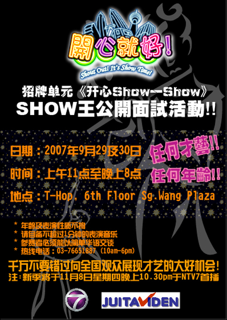 开心就好招牌单元“开心SHOW一SHOW”SHOW王公开面试活动更新时间: 2007年9月26日 3:50:45 PM
