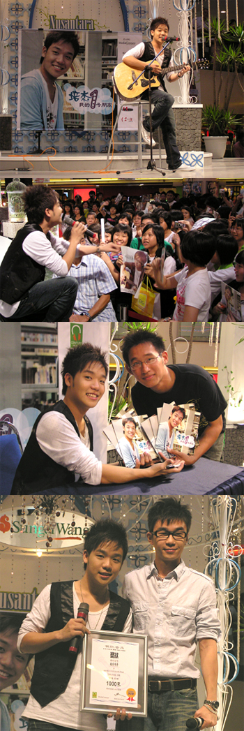 他说,作为艺人“态度”是很重要的。如果态度不好就没有人愿意帮助你一起完成梦想,如果态度好的话,就有愿意这两个字的存在。这是他6个月来跟着黑人一起工作领悟到的,希望培杰能紧记这一番话,在往后的日子能发光发热。 今日下午在金河广场举办培杰“我的1号朋友同学会”也吸引了许多来自芙蓉及马六甲的同学参加,对于一个首次举办活动的新人来说,这样的场面是浩大的。司仪蒋佩佩甚至说,这是她见过的新人之中,签专辑时间最长的一个,因为排队等签名的人群实在太多了。 同学会开场,培杰先以吉他弹唱了几首大家耳熟能详的友情歌曲,包括:“我的朋友我的同学我最爱的一切”、“朋友”、“关怀方式”以及自己的创作“一路走来”,在唱他自己的创作“一路走来”和“我的1号朋友”,现场的同学还一起高举培杰的单曲专辑一起大合唱,歌声响彻金河广场大厅。 从“我的1号朋友”单曲发行至今已有2个星期,在发行后的几天内的销售便已经破百张,到了第2个星期的今天,唱片公司也宣布了单曲销量已经破1千张,让培杰感到惊喜不已。而在间中培杰也到了许多校园做弹唱,非常受学生的欢迎。对此,唱片公司还向培杰施压一定要把单曲卖出5千张,才会推出他的个人EP。 对于公司的施压,培杰坦言做好自己的本分最重要,对自己信心有加,最希望大家都会喜欢听他的歌。接下来的日子培杰将会执行100场校园跑透透的任务,也让大家来替他实践推出个人EP的心愿。 对于林健辉的出现不但吓了培杰一跳,现场的许多人也意料不到已经6个月没有在马来西亚露面的他会突然出现。久违的林健辉,让人感觉成熟稳重了,也越见散发星味。 在问及近况,健辉指出这趟回来是为培杰站台,然后就得飞回北京工作。除了继续在北京青海卫视的电视节目“青年汇”的拍摄,他这趟回北京也将展开巡回路演,同时准备在10月杪到台北去执行新任务。除外,好友Vick张祖诚也专程出席同学会替他加油打气。 - 世纪音乐新闻及照片提供 更新时间: 2007年10月1日 5:34:41 PM